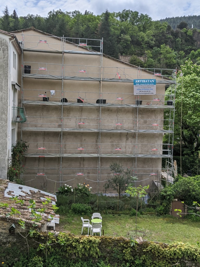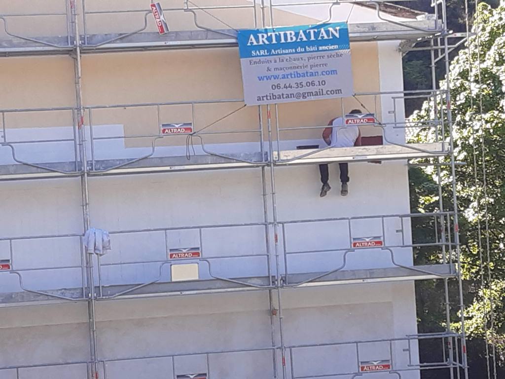 Nous avons réalisé un enduit chaux en trois passes (dégrossi et corps d’enduit à la chaux hydraulique et finition à la chaux aérienne).