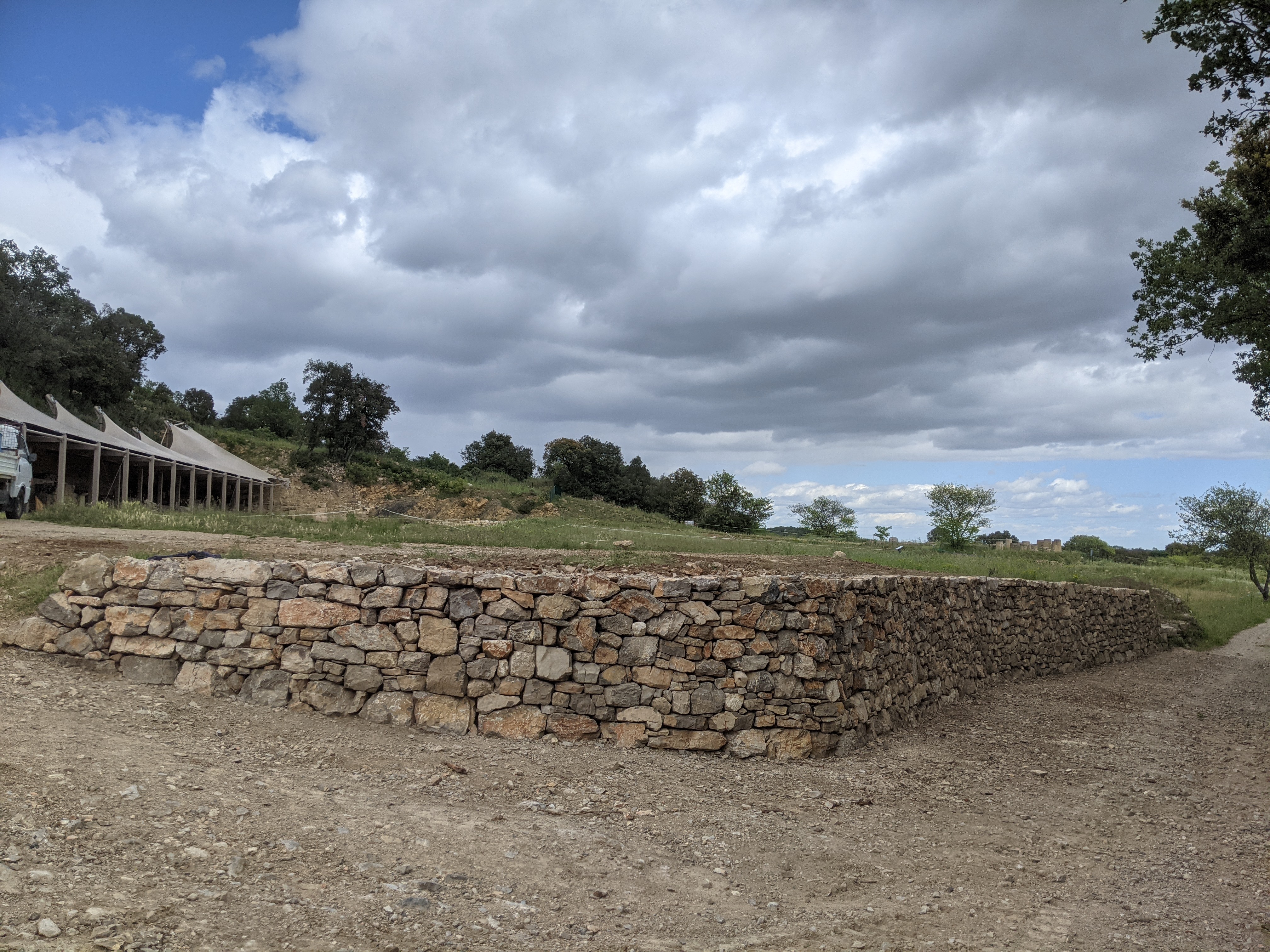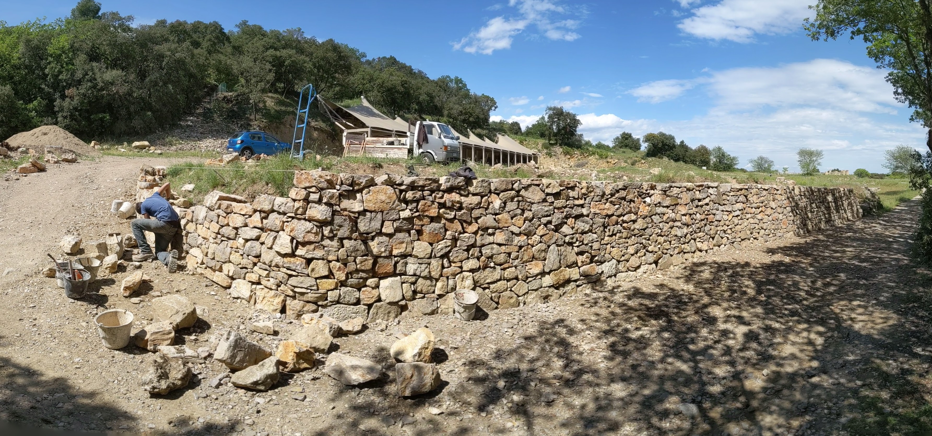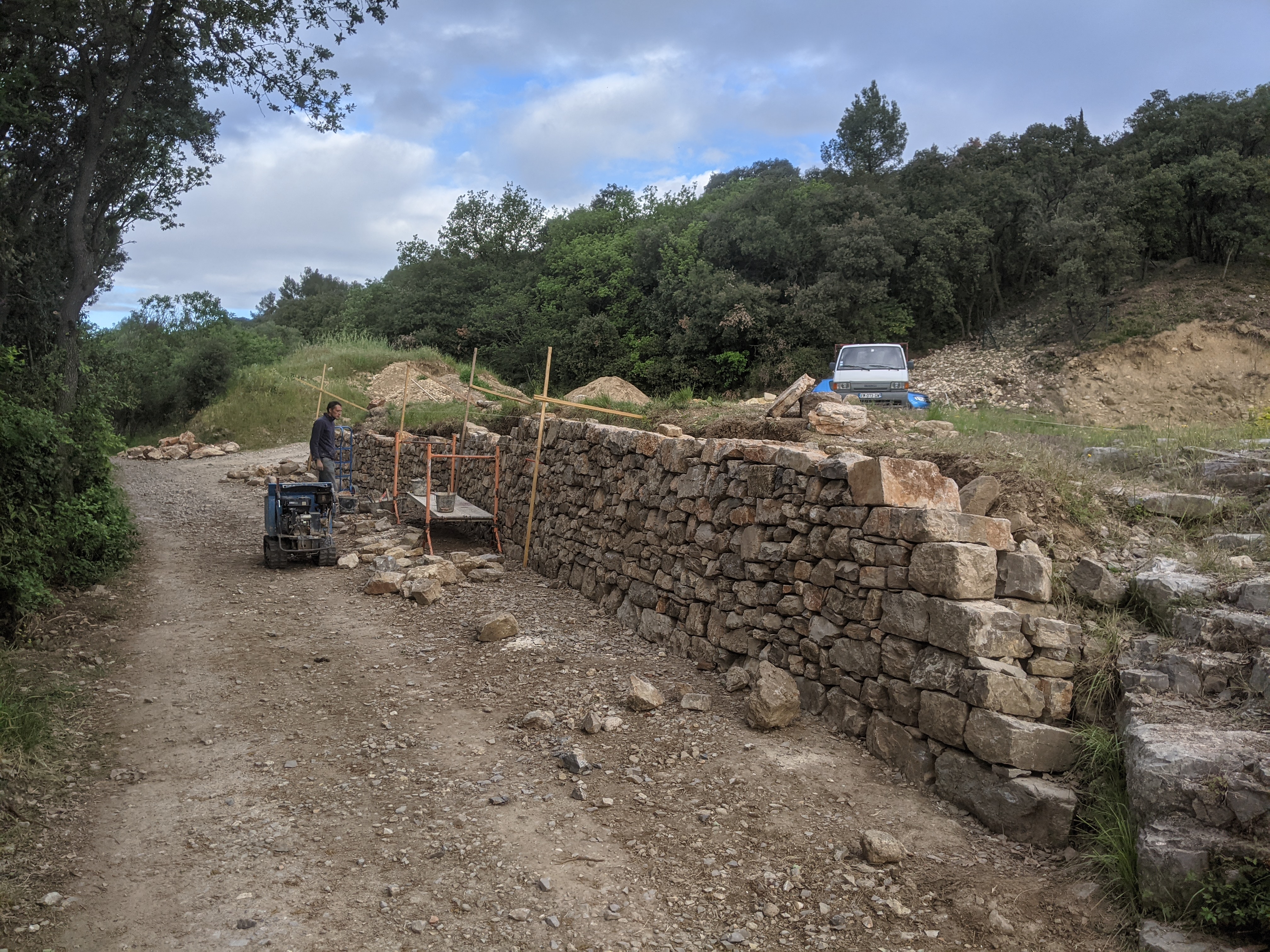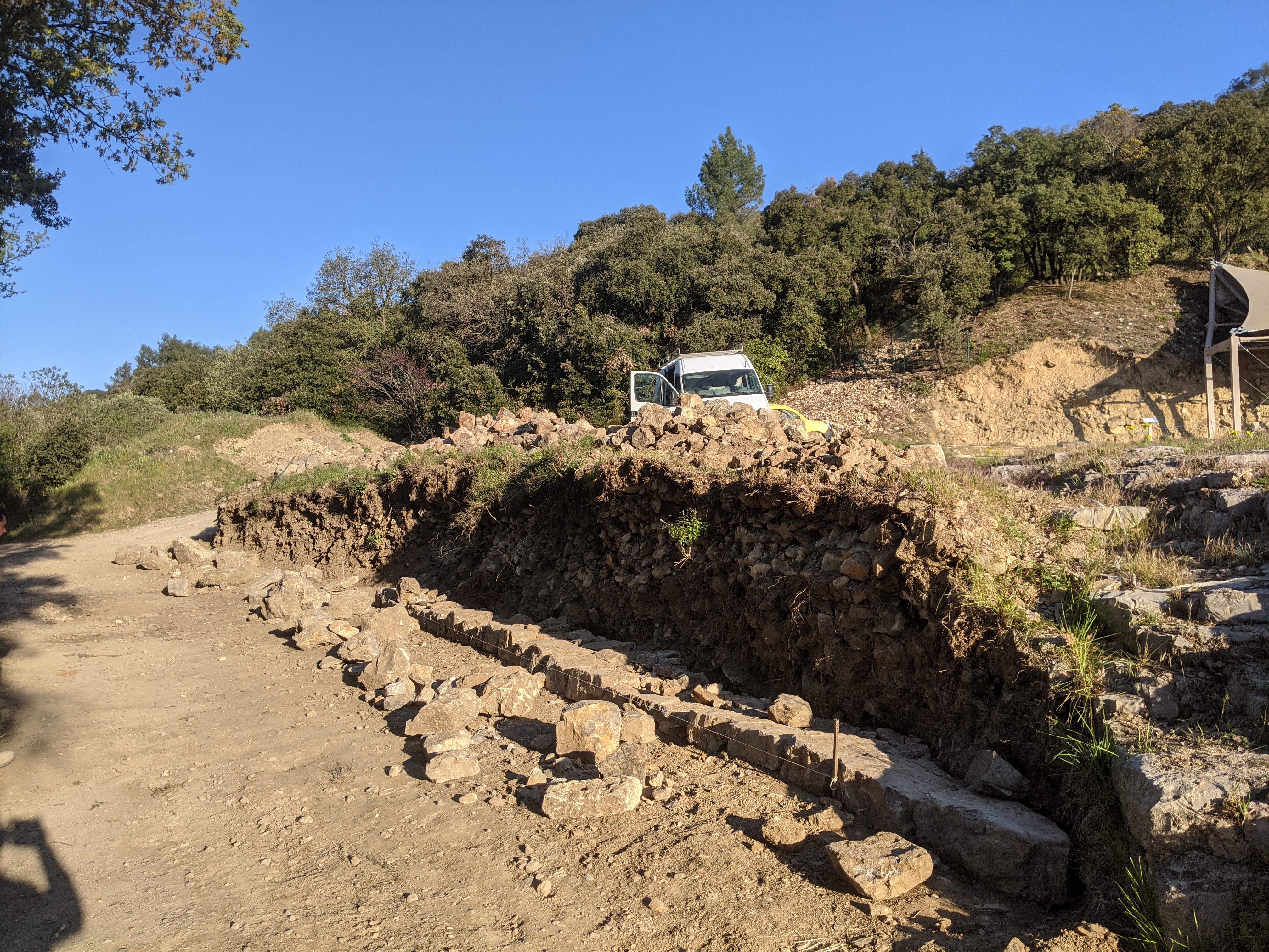 Réalisation d’un mur de soutènement à pierre sèche à l’entrée du site archéologique Romain du Castellas à Murviel-Les-Montpellier suite à une commande de Montpellier Méditerranée Métropole.