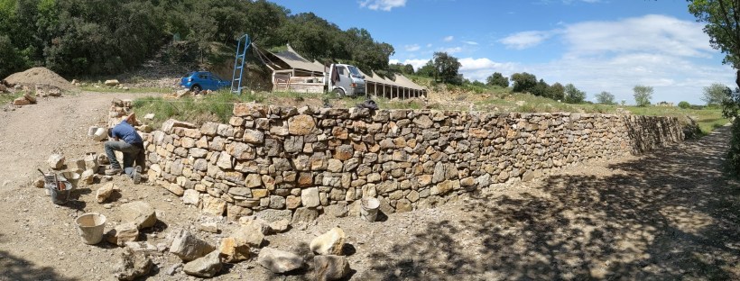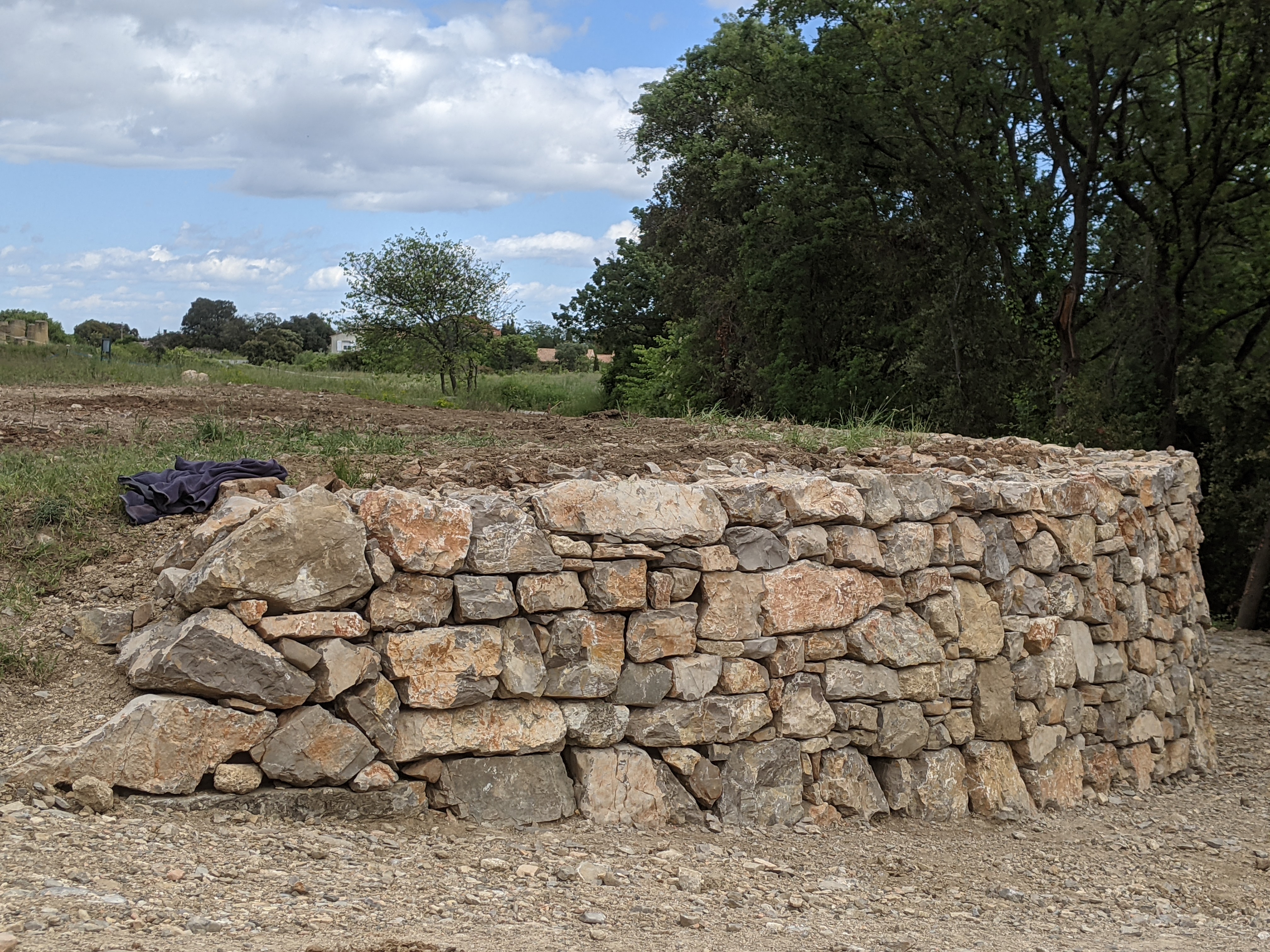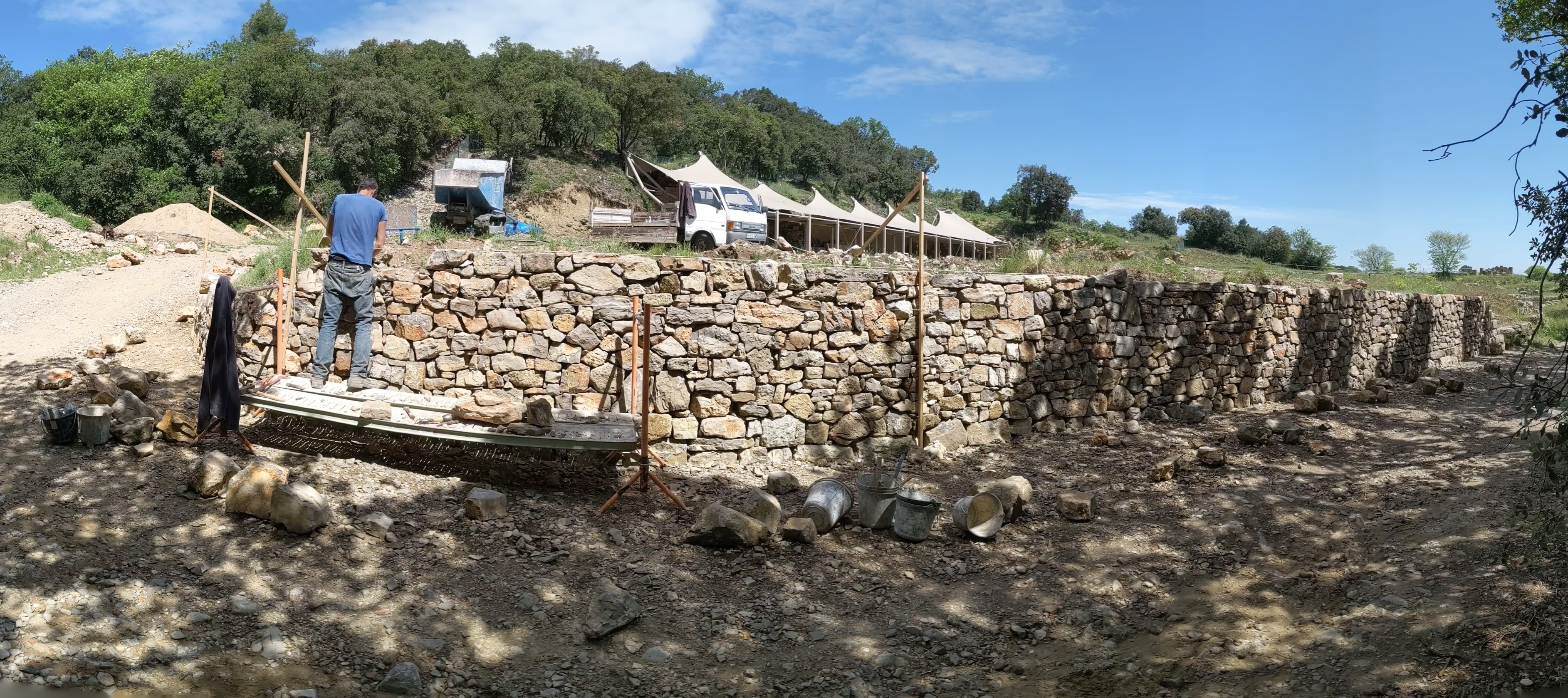 Réemploi des pierres du site et apport de nouvelles pierres locales.