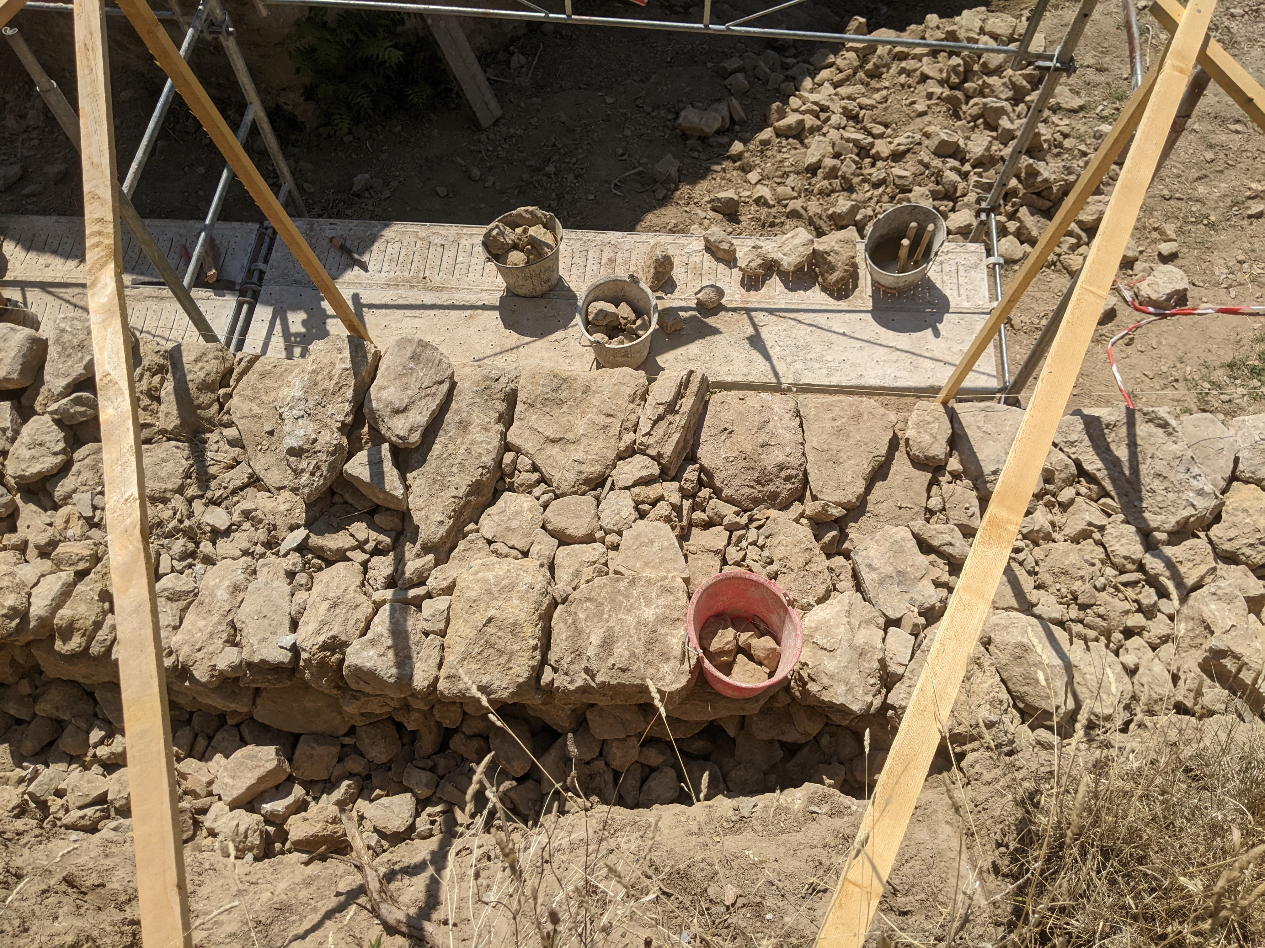 Après terrassement de la zone effondrée, les pierres ont été triées de la terre pour réemploi.