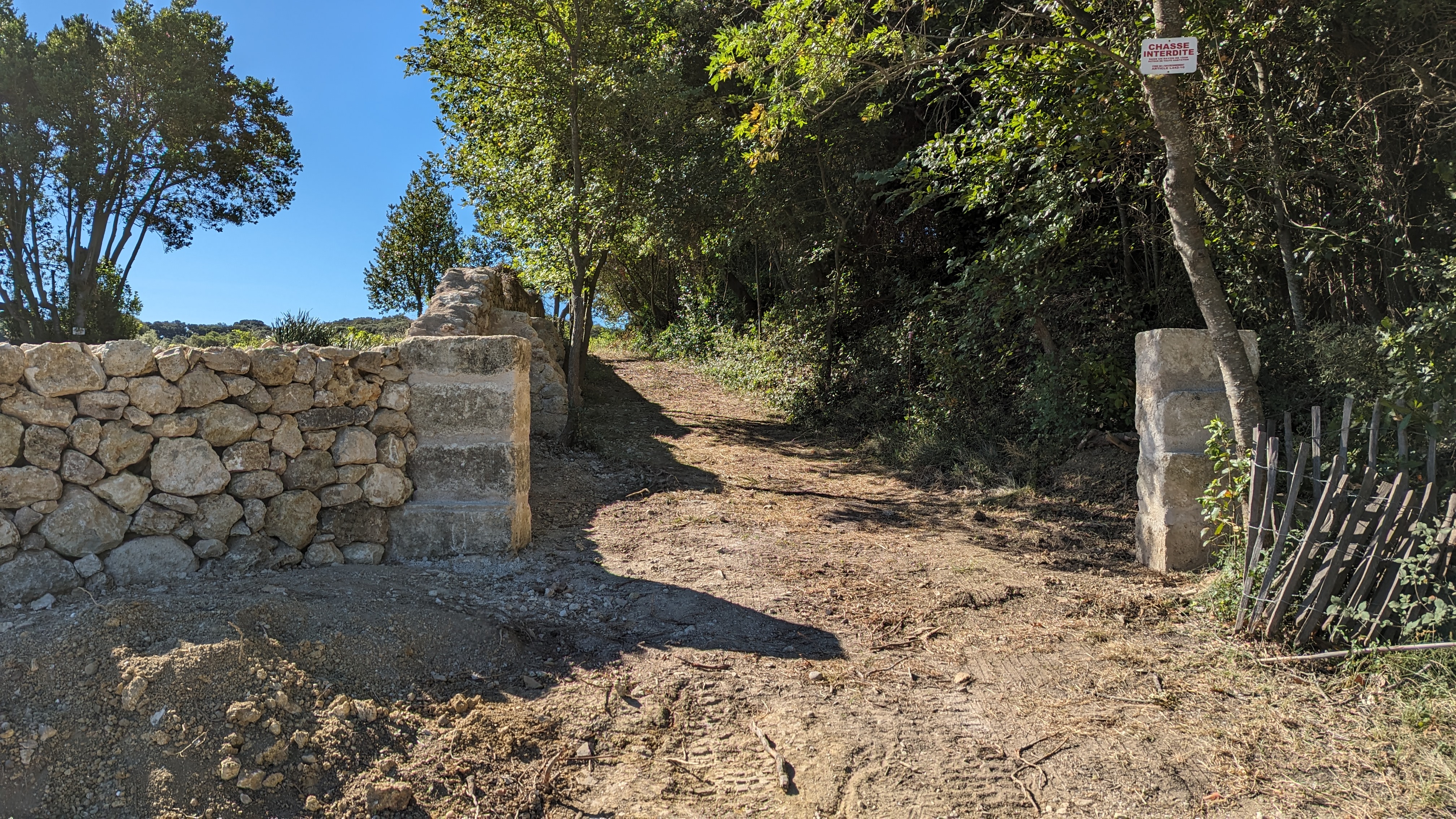 Réalisation de piliers pour pose d’un portail d’entrée et contreforts pour un ancien mur à double parement qui présente une inclinaison importante. maçonnerie au mortier de chaux