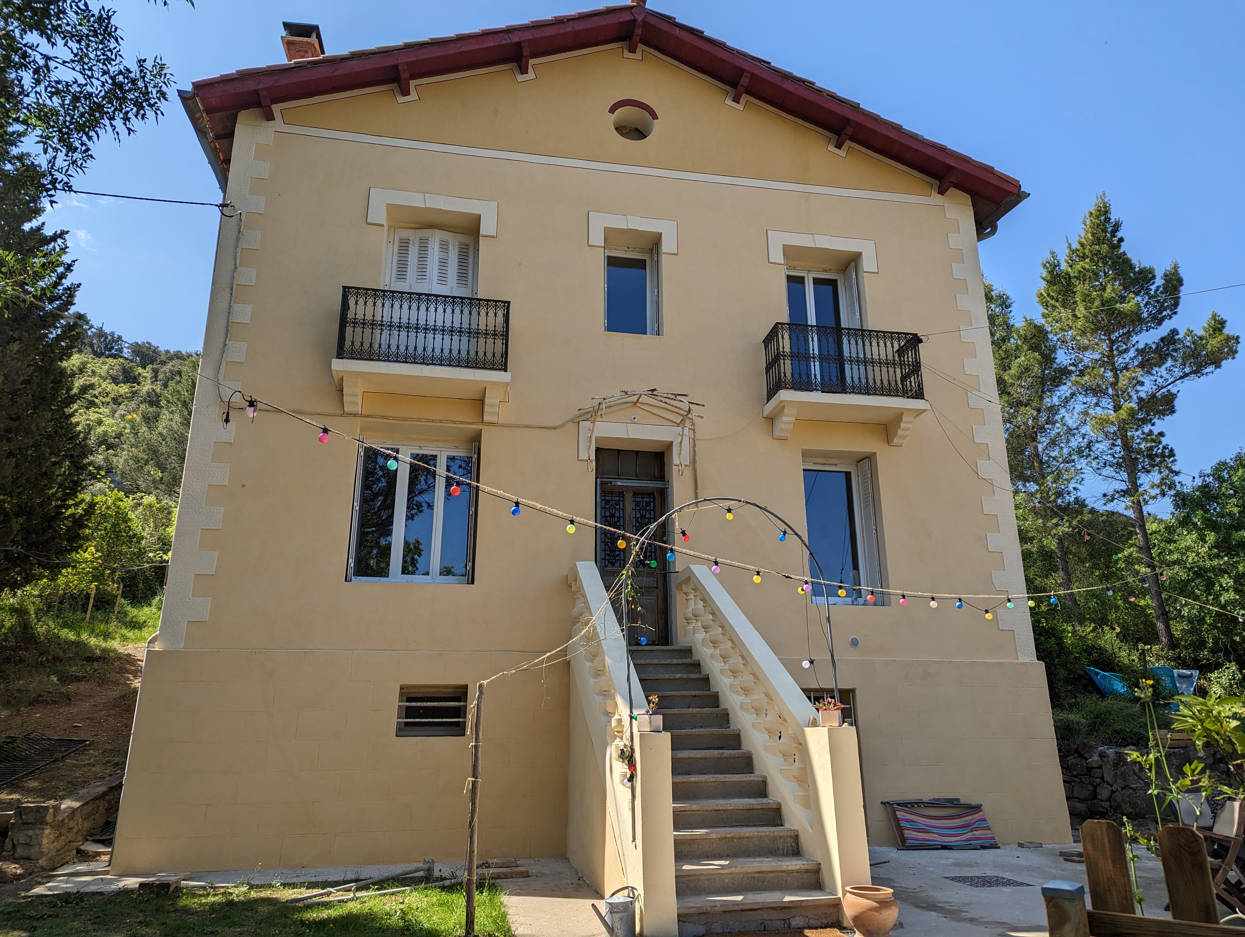 Sur un ancien enduit chaux intègre, en bon état, nous avons procédé au nettoyage de la façade, à l’ouverture et à la reprise des fissures apparentes.