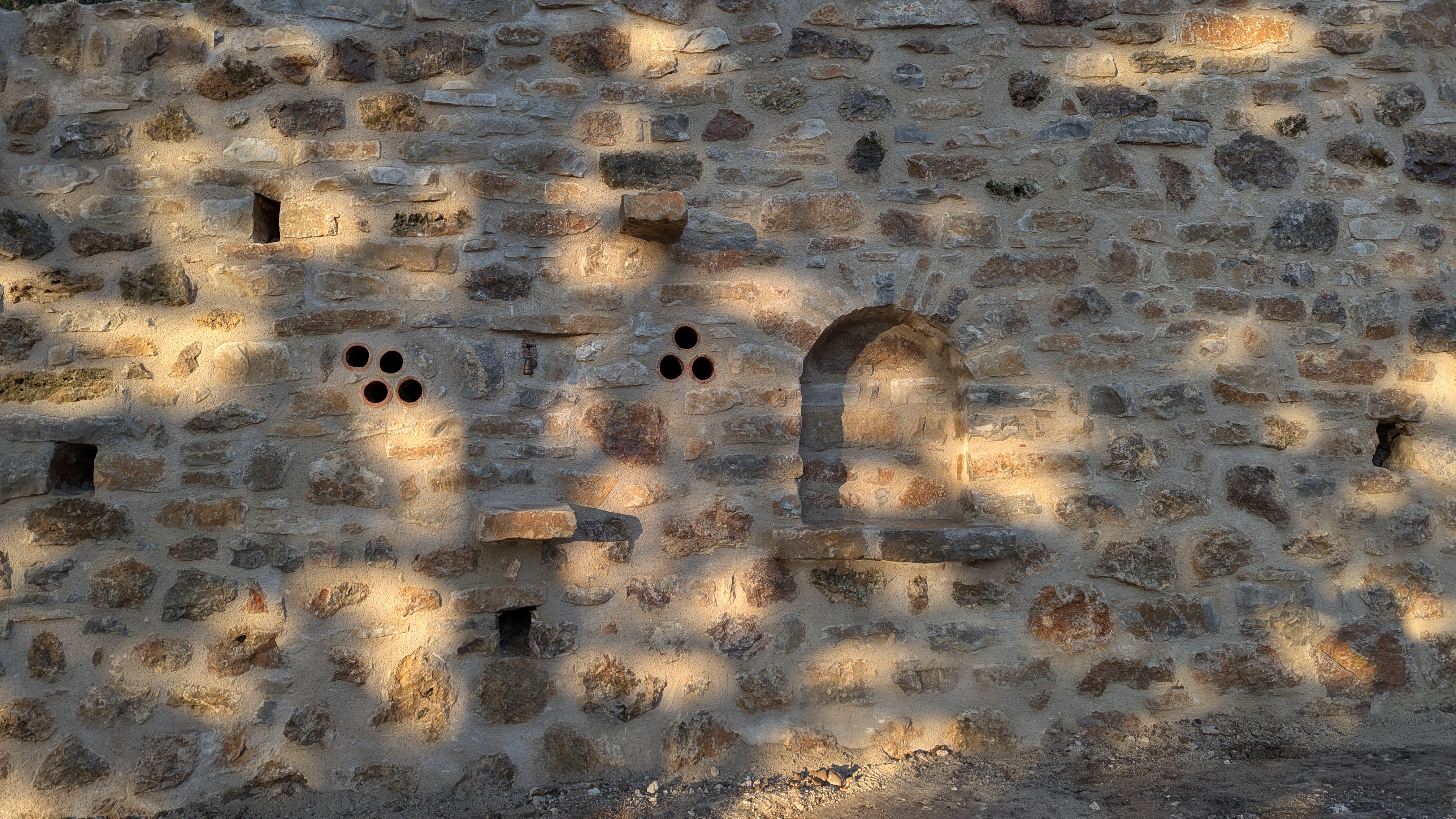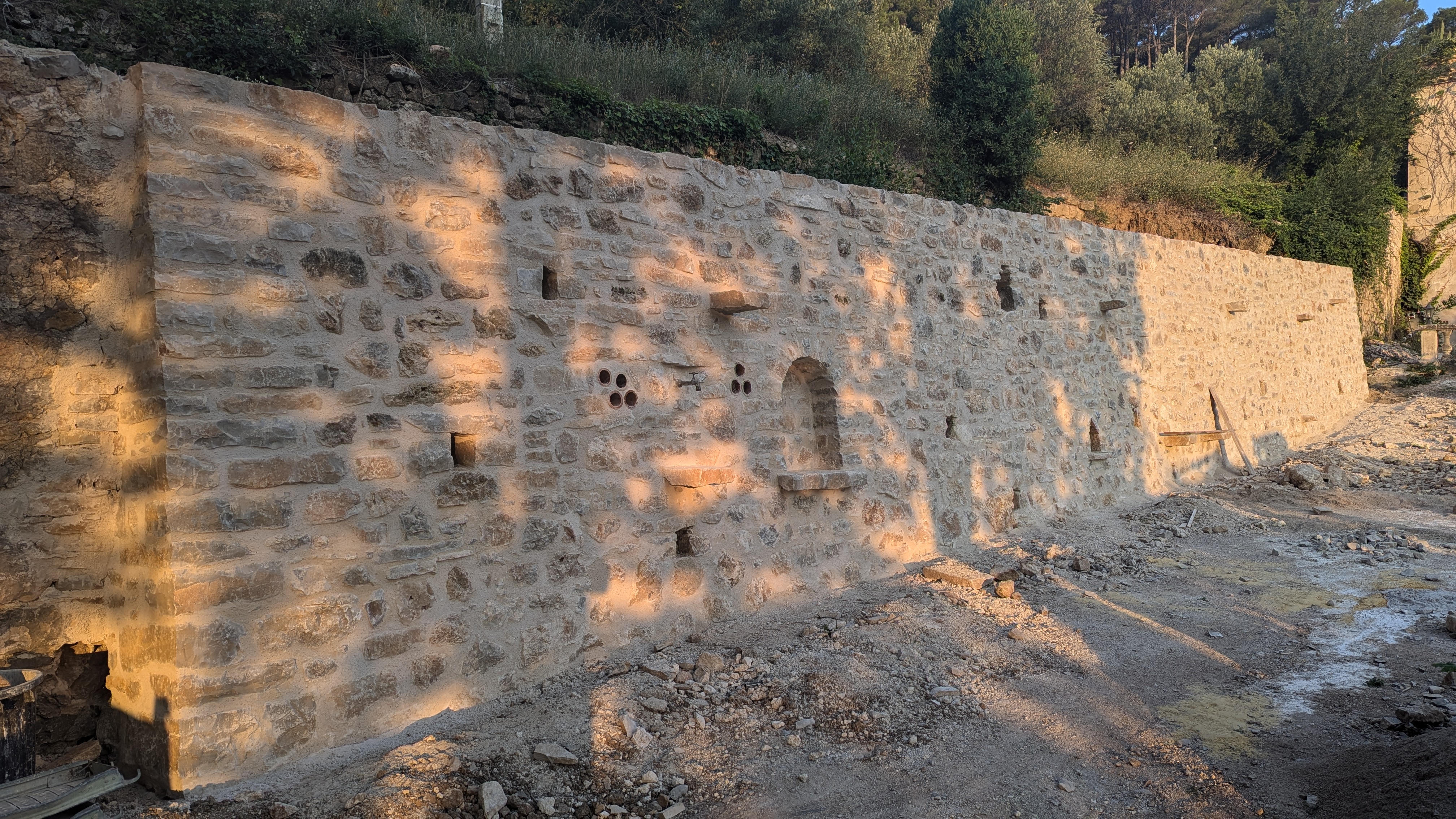 Quelques niches ont été réalisées, et des tablettes disposées pour un mur plus ludique. Un rejointoiement complet du mur a été fait en fin de chantier pour mettre en valeur la maçonnerie.