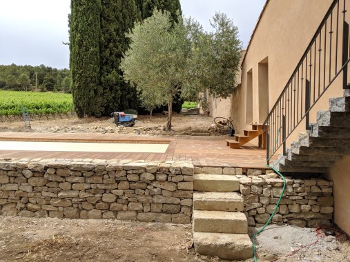 Mur aspect pierre sèche maçonné à la chaux et escalier – Villeveyrac 34560